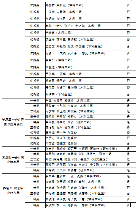 赛道五—财会职业能力赛:一等奖1项、二等奖2项、三等奖3项、优秀奖5项。
