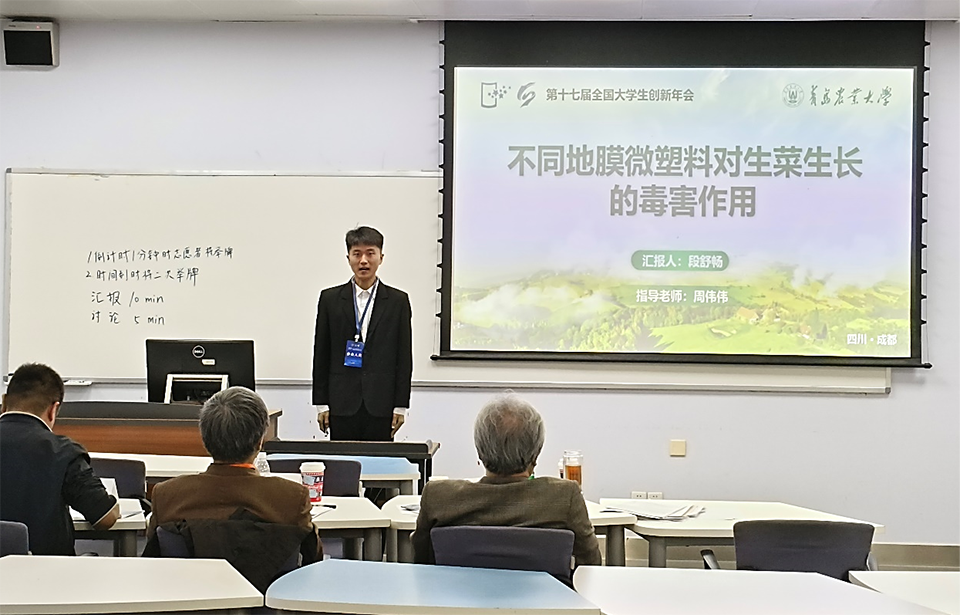 入选项目为yl6776永利集团副教授周伟伟指导的《不同地膜微塑料对生菜生长的毒害作用》。该项目聚焦农用薄膜土壤残留问题,比较研究了传统生物不可降解地膜与新型生物可降解地膜微塑料对生菜生长的毒害影响,发现新型生物可降解地膜微塑料对生菜生长的毒害作用显著大于传统不可降解地膜微塑料,为农膜微塑料特别是新型生物可降解微塑料的污染防控提供了重要理论依据。该研究成果已发表在环境领域国际著名期刊《Environmental Pollution》上,项目组成员段舒畅作为代表在年会上进行了汇报交流,体现了学校强化创新创业教育的育人成效,展示了青农学子积极投身创新实践的精神面貌。