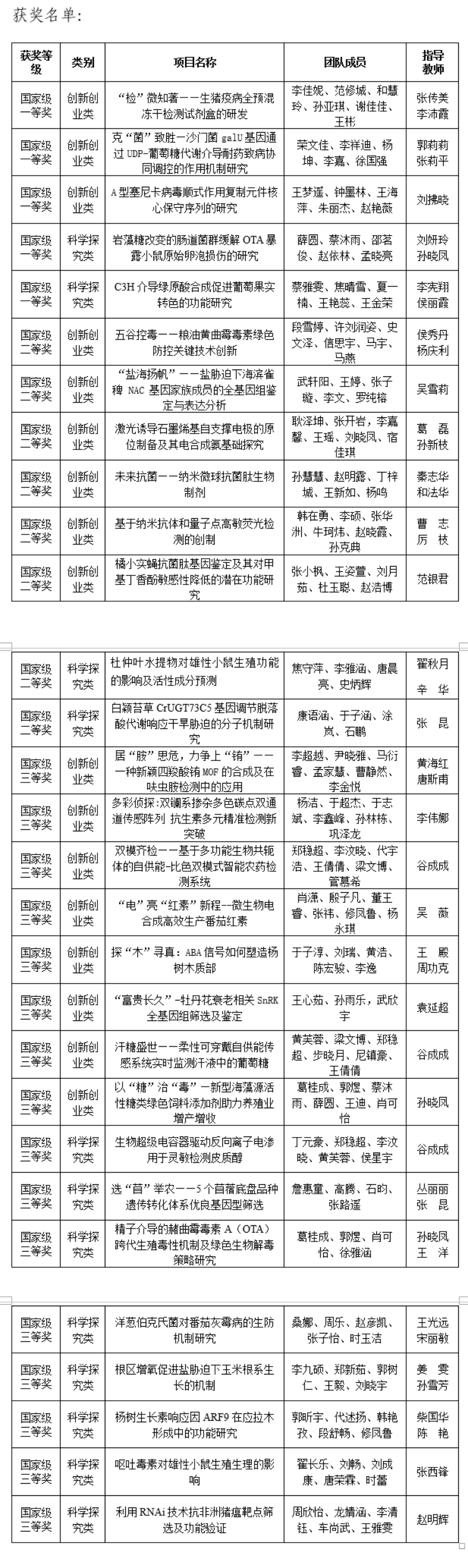 近日,第十届全国大学生生命科学竞赛全国决赛成功举办,我校学子共斩获国家级一等奖5项、二等奖8项、三等奖16项,展现了扎实的专业素养与突出的创新实践能力。